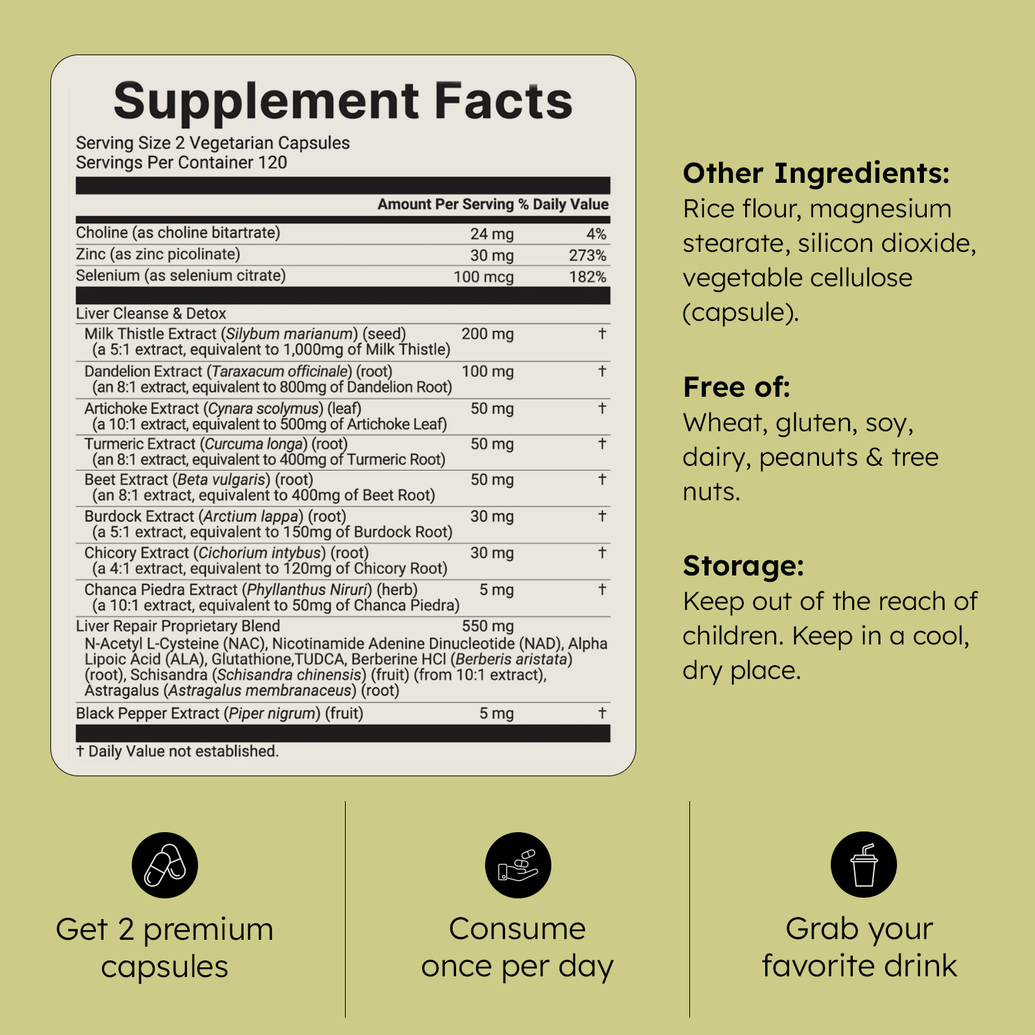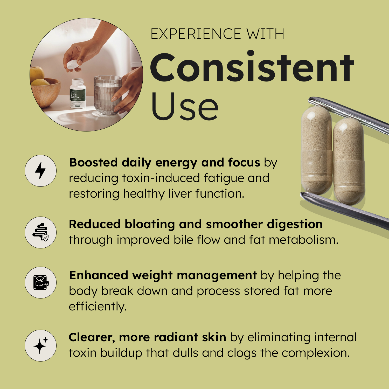 Simply add Liver Detox by Somalogy to your daily routine and feel your energy, clarity, and vitality return. Here’s how it works: